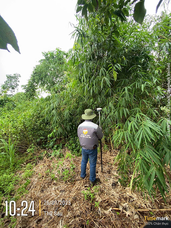 Kỹ thuật viên kiểm tra ranh giới, địa hình, yêu cầu của chủ đất và lựa chọn thiết bị đo phù hợp (GNSS – toàn đạc – flycam).